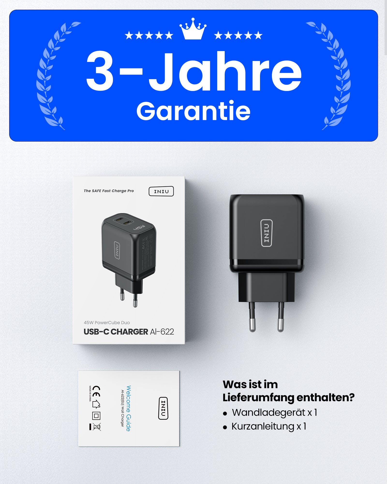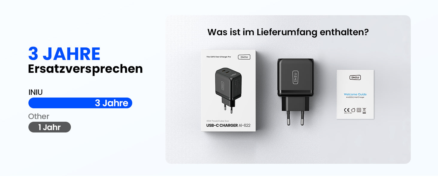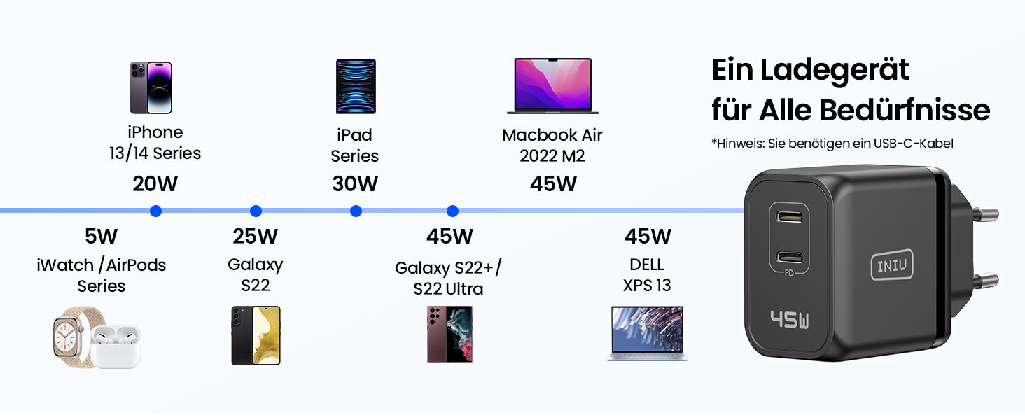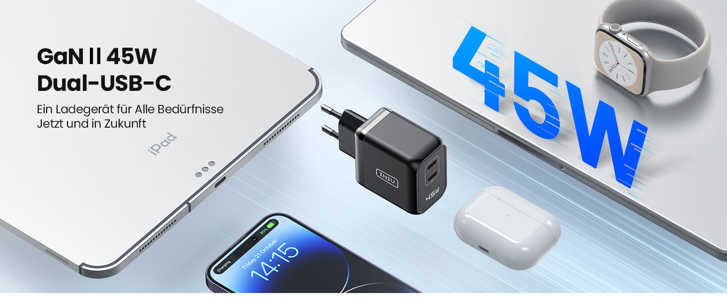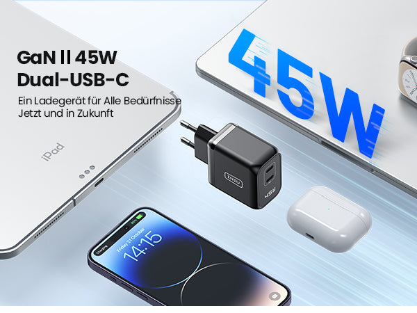 INIU I622 Dual Port USB-C GaN Schnellladegerät 45W