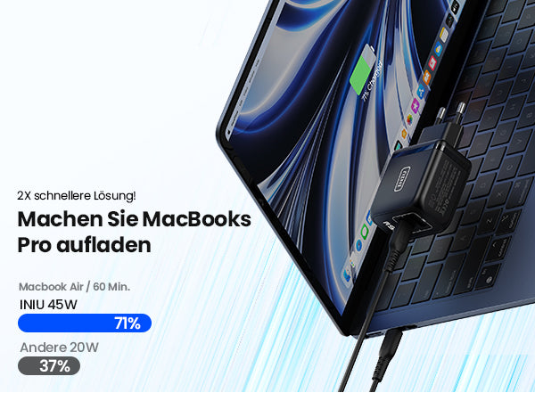 Die proprietäre GaNⅡ-Technologie von INIU schützt Sie und Ihre Geräte, indem sie die Temperatur über 3,2 Millionen Mal pro Tag intelligent überwacht und Sie und Ihre Geräte so vor der Gefahr von Feuer und Batterieschäden bewahrt.