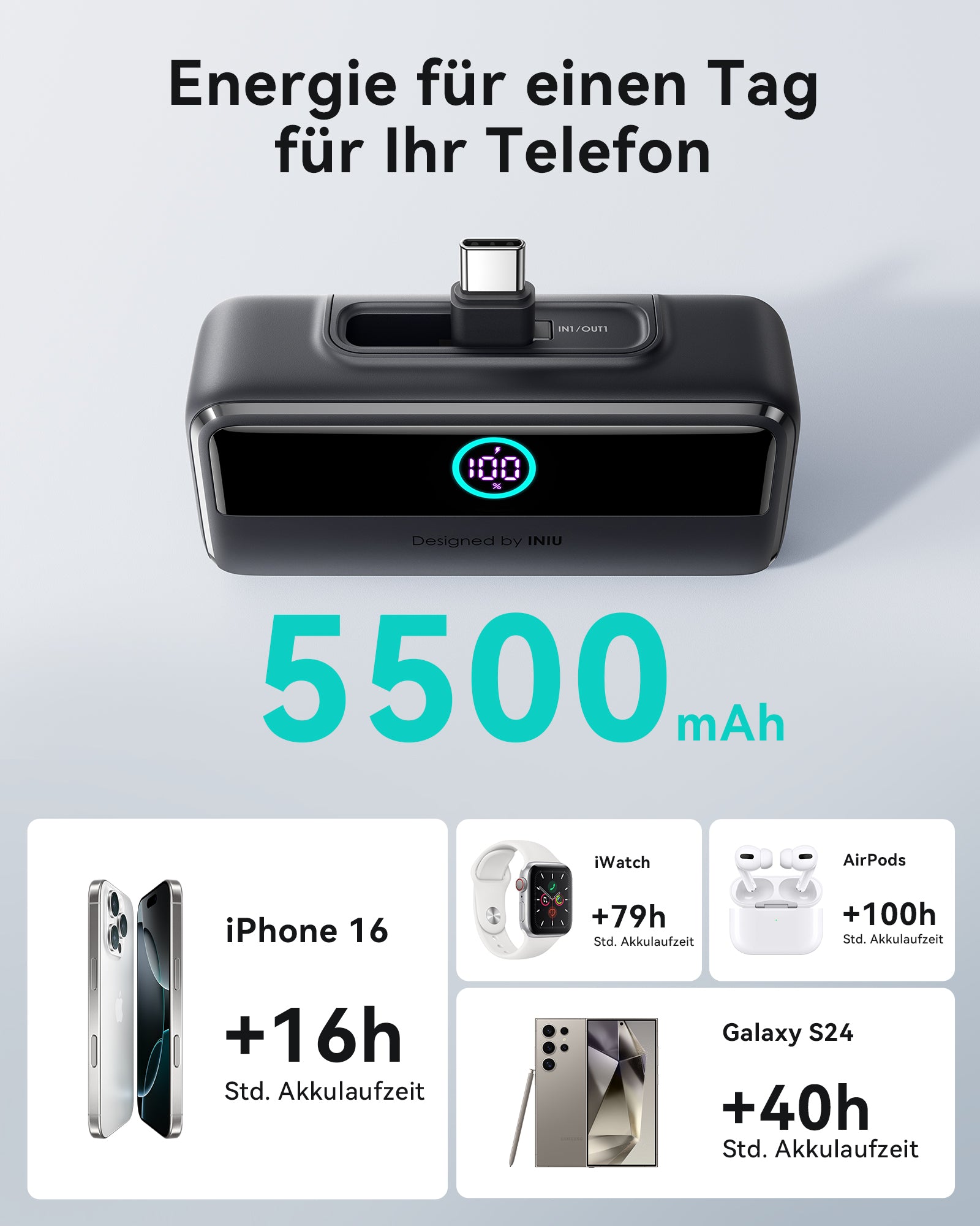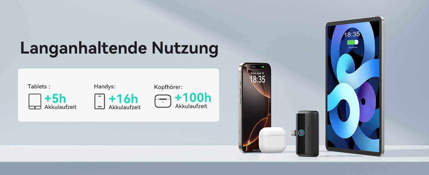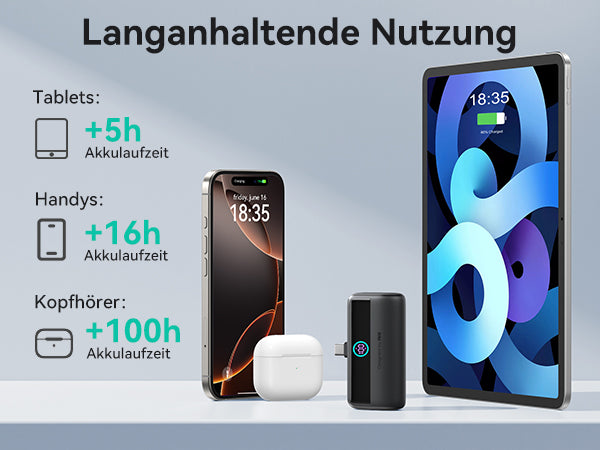 - [5500 mAh für einen Tag Leistung] Mit 5500 mAh bleiben Sie den ganzen Tag über energiegeladen – perfekt für einen ganzen Tag voller Arbeit, Freizeit und allem, was dazugehört. Nie wieder Angst vor leerem Akku!