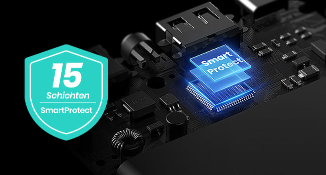 15-Layer SmartProtect wehrt 15 mögliche Laderisiken ab: Keine Überhitzung und keine Geräteschäden mehr.