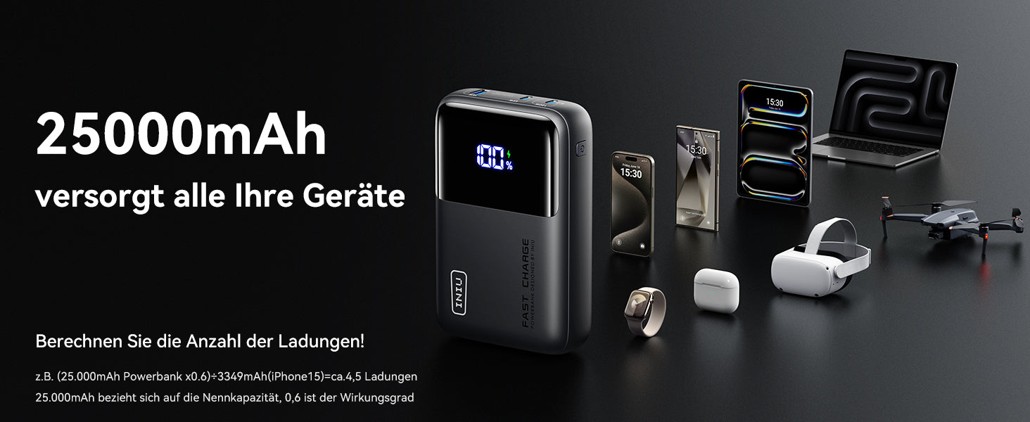 INIU Cougar P63-E1 Kleinste Powerbank mit 100W 25000mAh