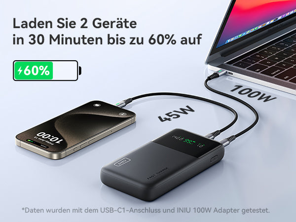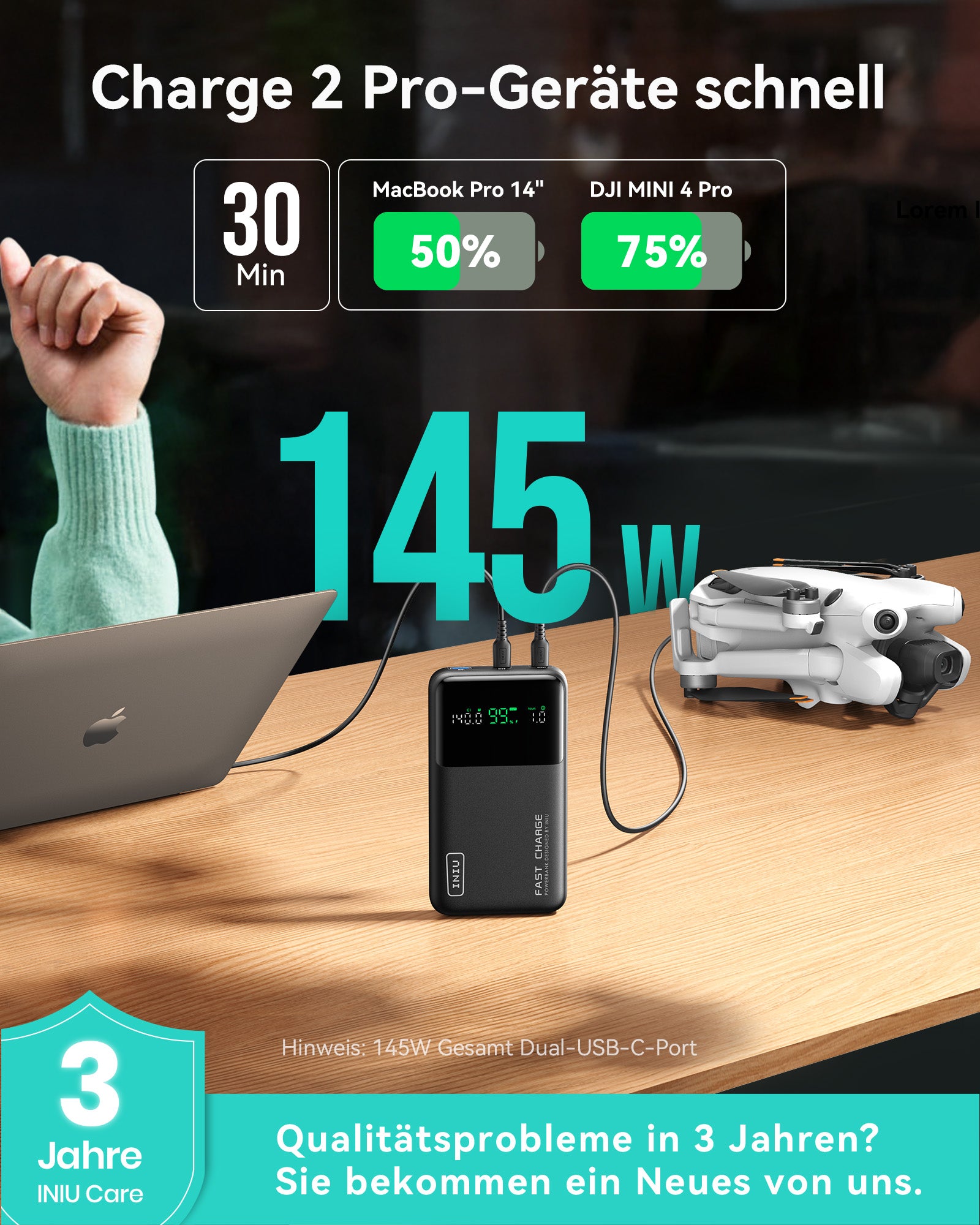 Bei INIU sorgt unser branchenführender 3-Jahres-Service für ein sorgenfreies Einkaufserlebnis. Wird mit einem 2 Fuß langen 240-W-USB-C-auf-C-Kabel für ein besseres Schnellladeerlebnis geliefert.