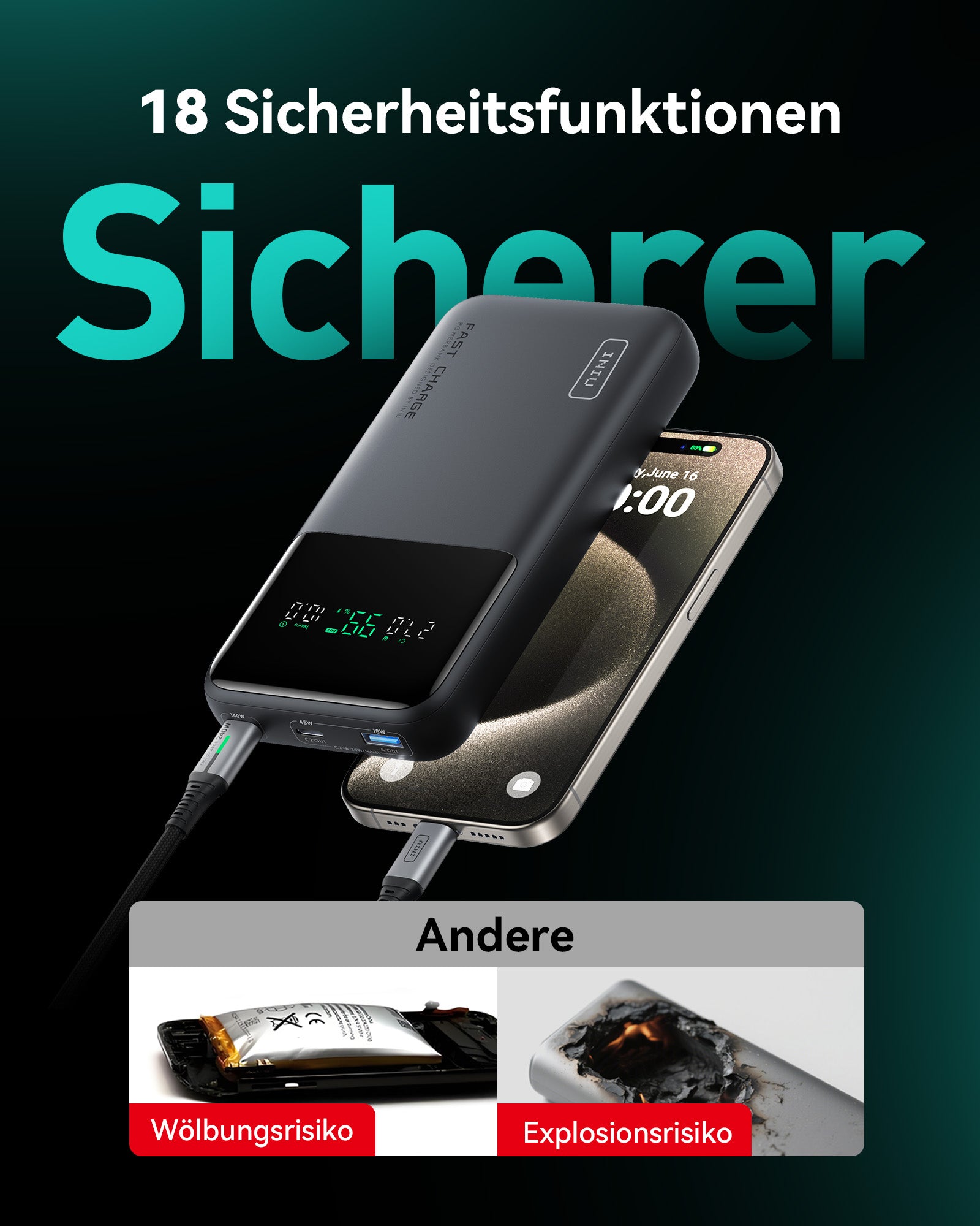 15-Layer SmartProtect wehrt 15 mögliche Laderisiken ab: Verabschieden Sie sich von Überhitzung und Geräteschäden.