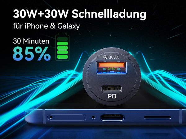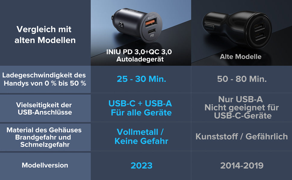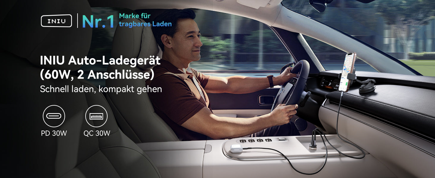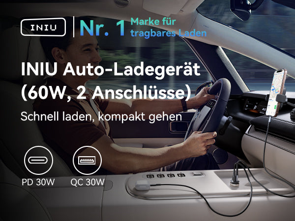 - [Leistungsstarkes Laden für iPads] Mit einer hohen Leistung von bis zu 30 W für den PD-USB-C-Anschluss kann das INIU PD+QC-Autoladegerät sogar ein iPad Pro mit voller Geschwindigkeit aufladen, was kein anderes Autoladegerät kann.