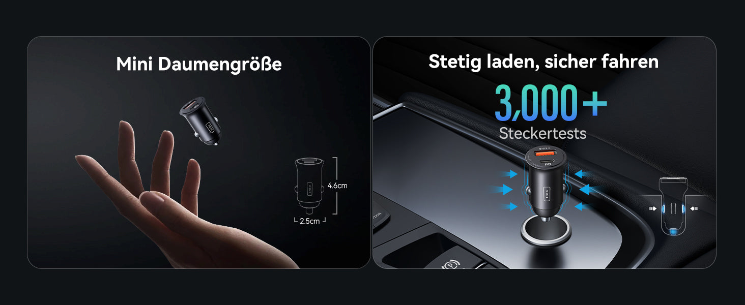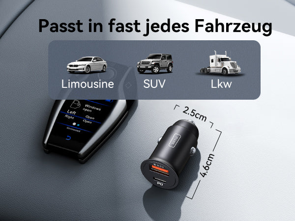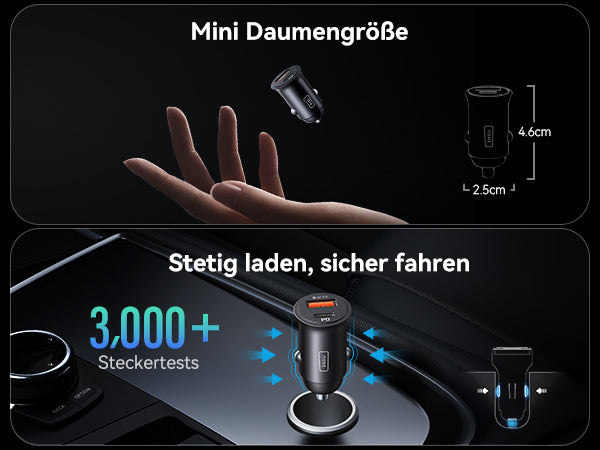- [Ultrakompakt] Es ist daumengroß, 58 % kleiner als Konkurrenzprodukte und wiegt weniger als 14 g. Dadurch passt es bequemer und fester in das Armaturenbrett oder den Zigarettenanzünder, ohne dass man befürchten muss, dass es sich auf einer holprigen Straße löst.