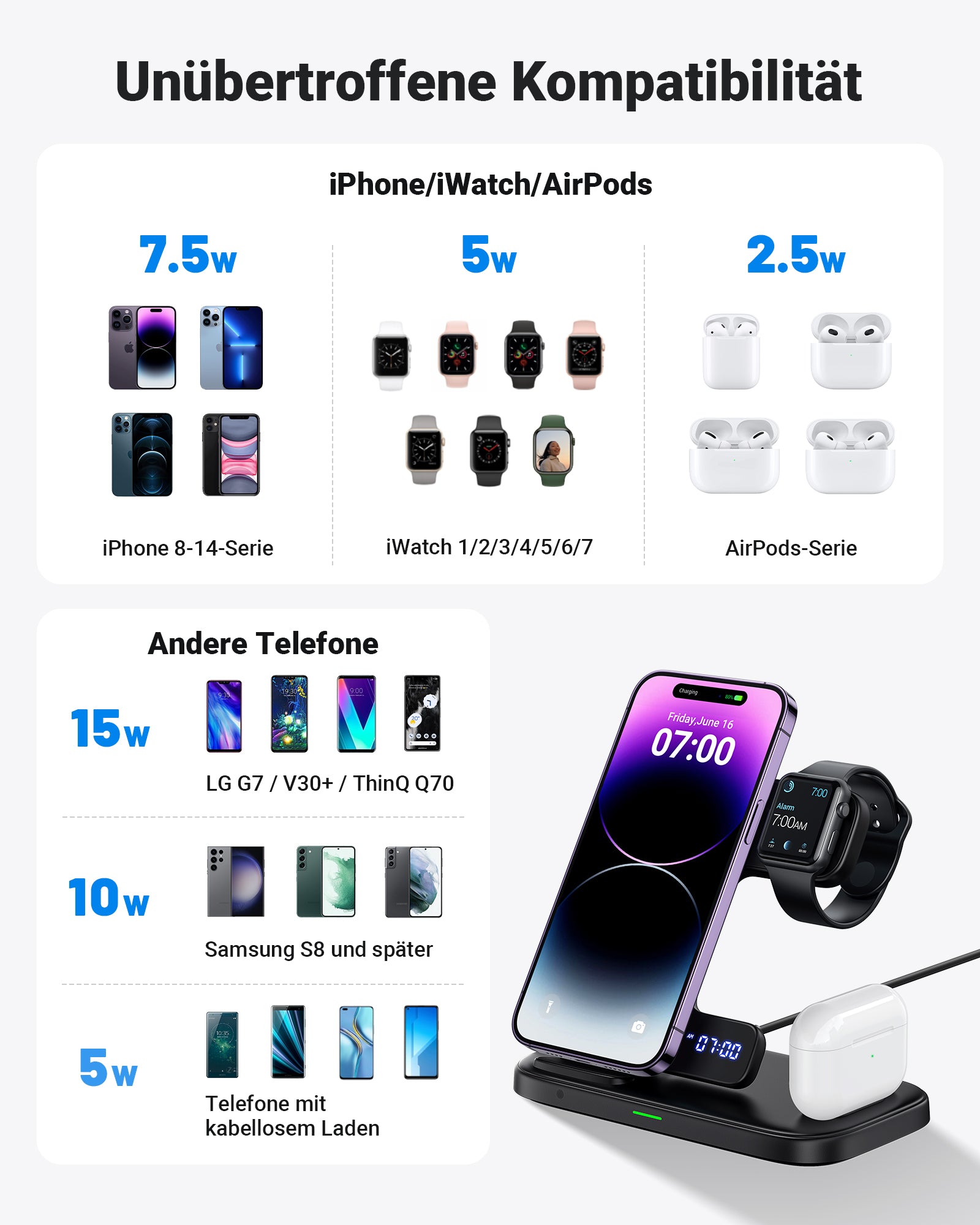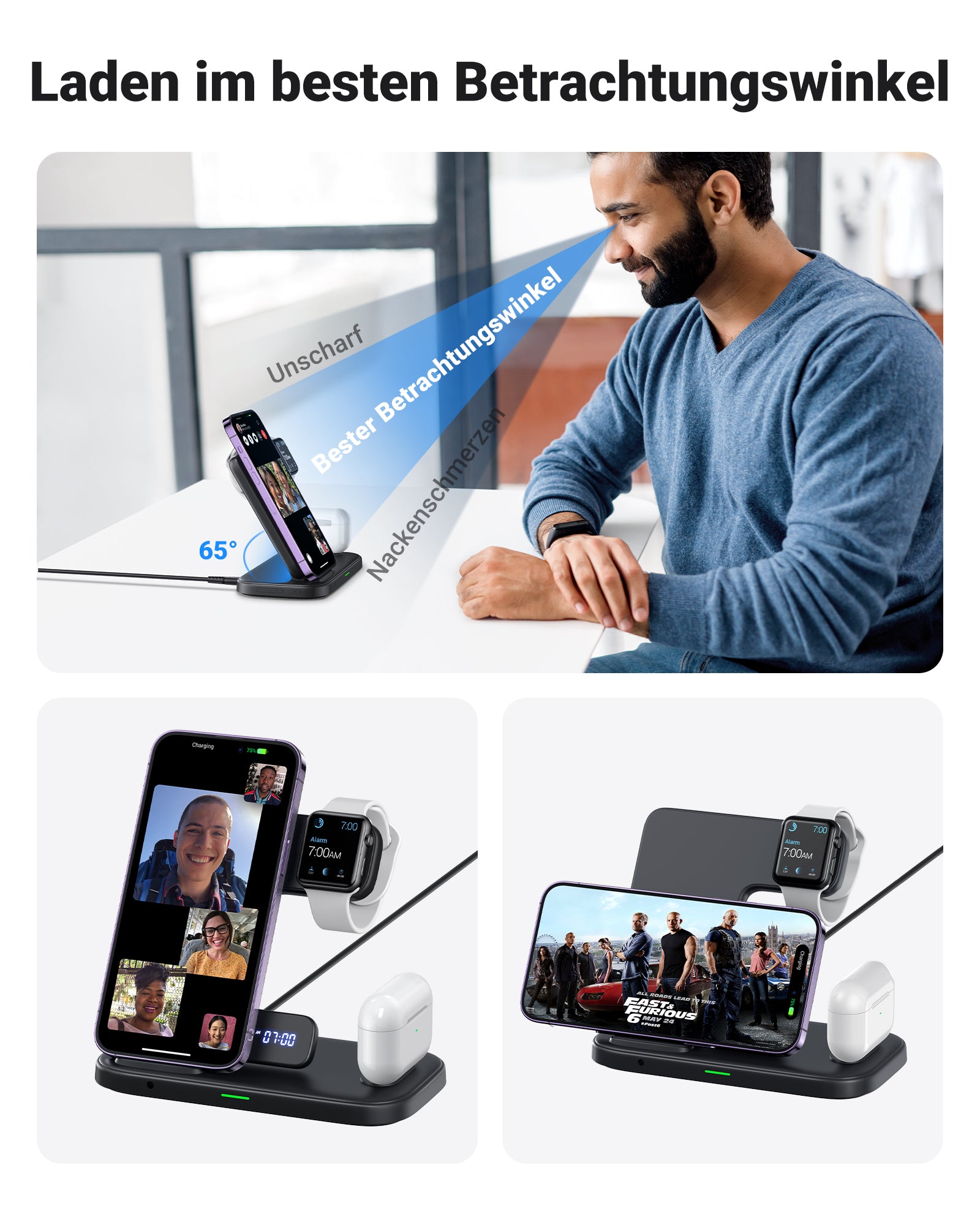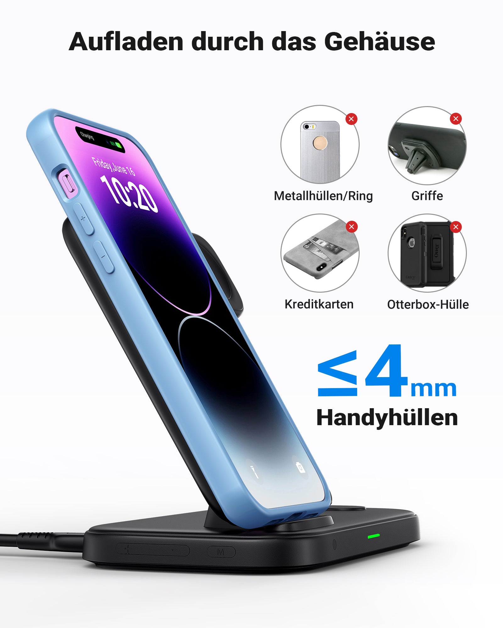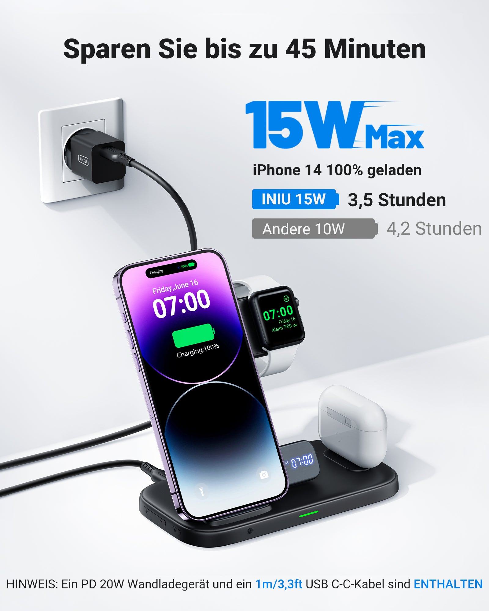 Stellen Sie einfach Ihre 3 Lieblings geräte ein und das 15W max schnelle Laden wird mindestens 45 Minuten Telefon ladezeit unglaublich abbrechen.
